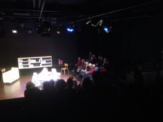 C'est par une soirée pluvieuse qu'Audioscenic a accueilli ses amateurs de théâtre au National à Bruxelles. Chantal, Emma et Bob nous ont installés au premier rang dans le studio avant de nous présenter une introduction préparée avec soin, comme toujours.